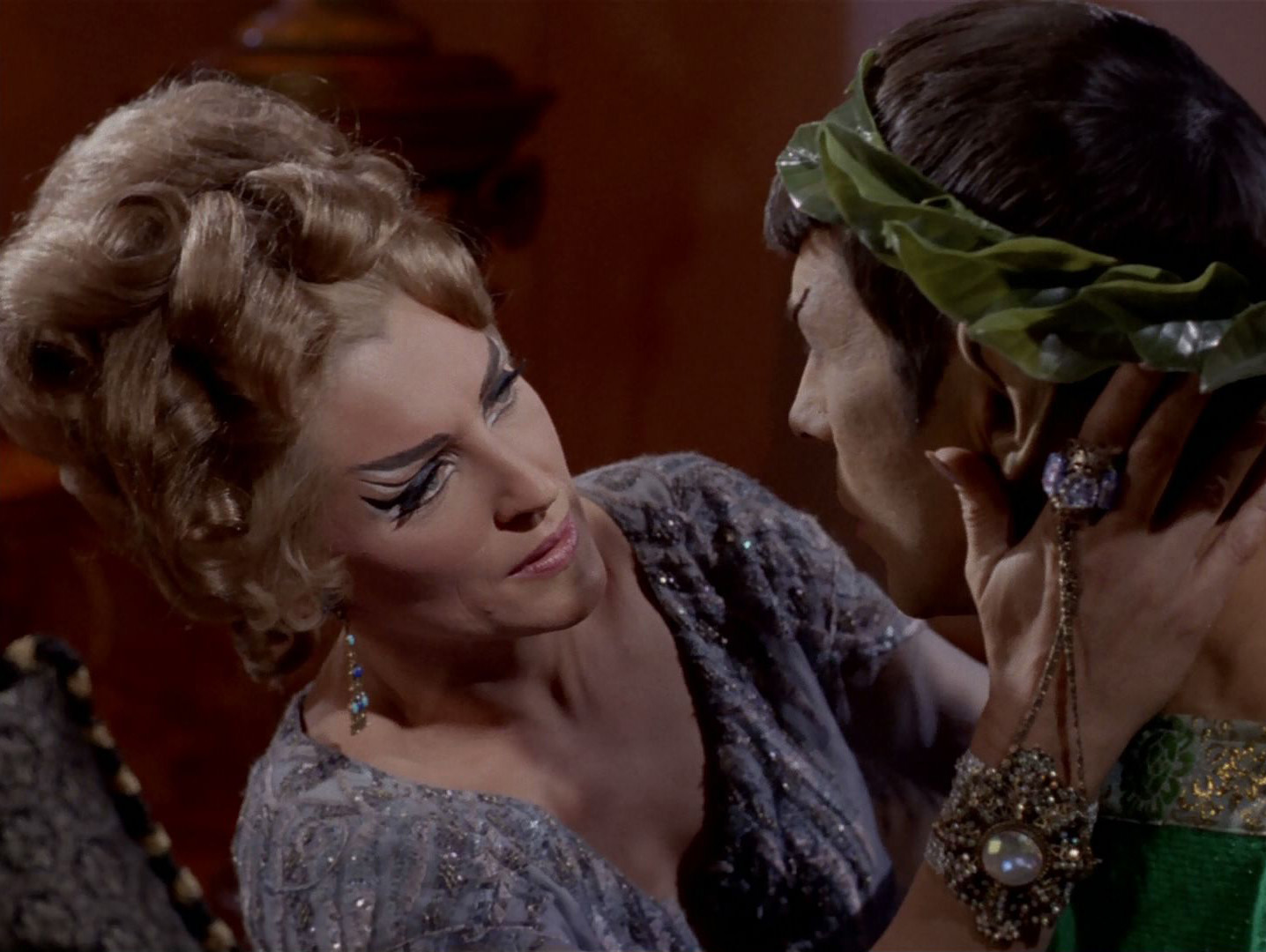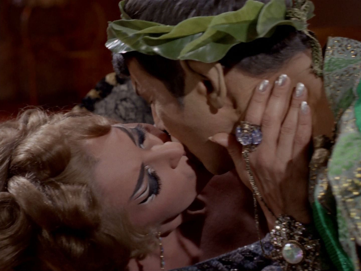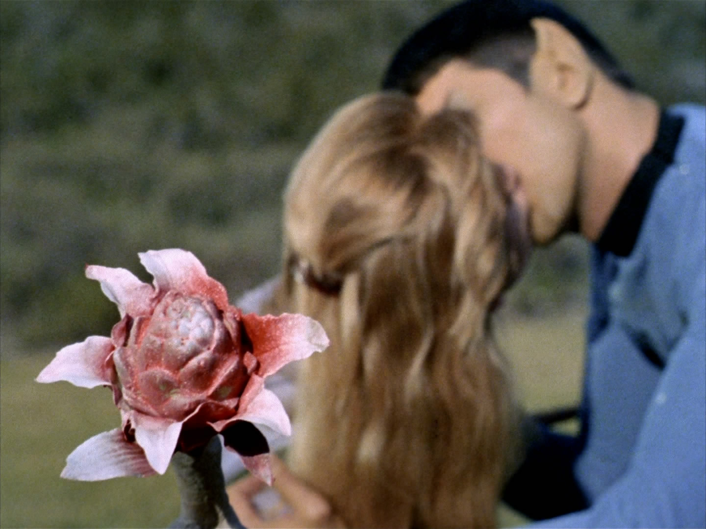Nurse Chapel (and her incredible eyeliner) finally gets her wish, albeit forced. I see a pattern here in Spock love scenes — he’s always on the right! (Best kissing angle?)
