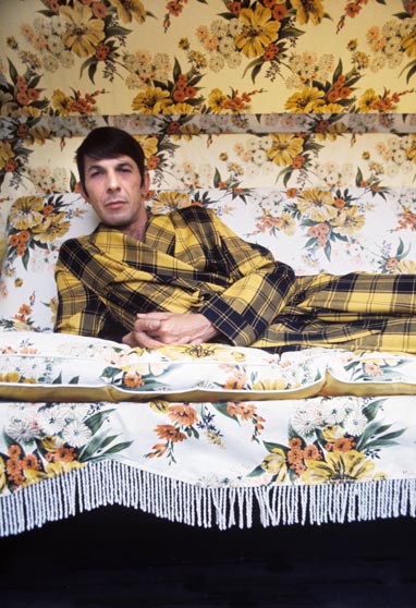Here’s a close up photo-shopped version of the candid. Nimoy is still very much in his ascot phase here (which suited him fine) – always happy to pose for a fan!