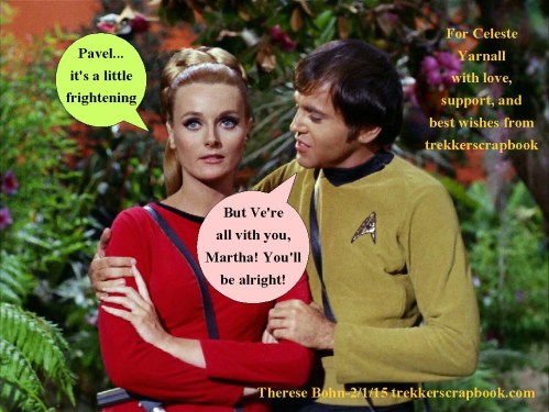 Tagged art, cancer fund, Celeste Yarnall, collages, death, funnies, love, Nazim Artist, Star Trek, Therese Bohn, Yeoman Martha Landon