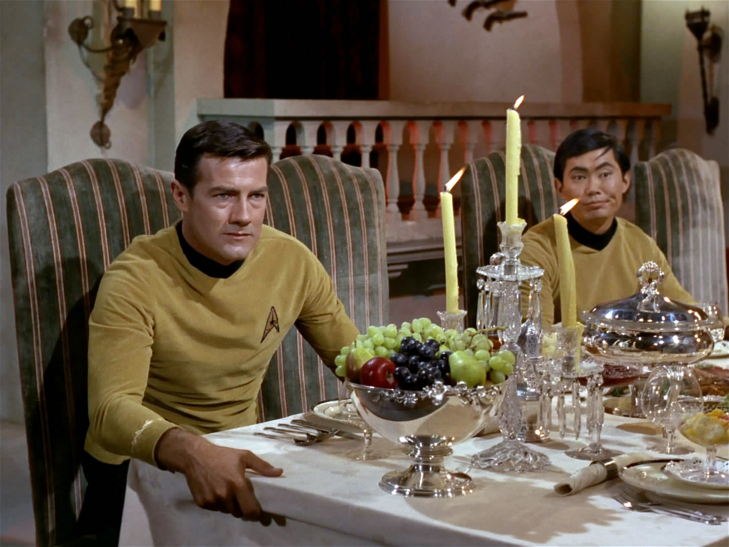 Sulu casually says ‘No’ to Trelane’s food.