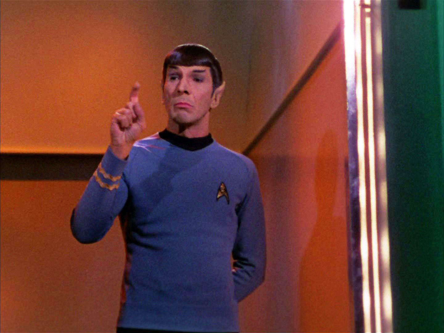 Spock nonchalantly taps a force-field.