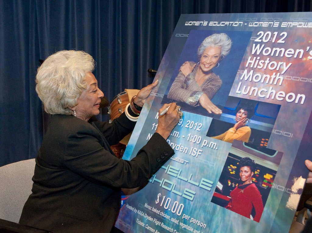 I saw Nichelle briefly in 1976 at the Star Trek Bicentennial 10 Convention in NYC. I was 15, and totally entranced by her. She gamely and graciously answered Star Trek question from the hungry fans, even if she had answered them dozens of times already. She loved the fans, and her time on Trek, and she knew that her experience as Lt. Uhura became the key to her amazing post-Trek life. At the end of her talk, she even sung a few bars of “Beyond Antares” in her silky, embracing voice. What a love. I can hear her voice now: