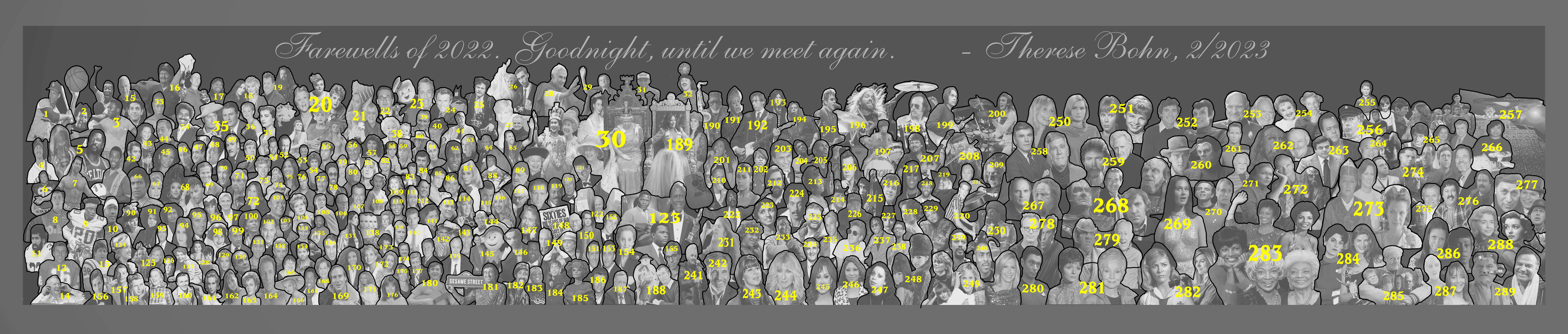 I finally finished my annual tribute to the stars we lost in 2022. It took a bit longer than I expected, as I started this in December, and here it is March! But I wanted to be sure it was as complete as possible, and I believe it is.