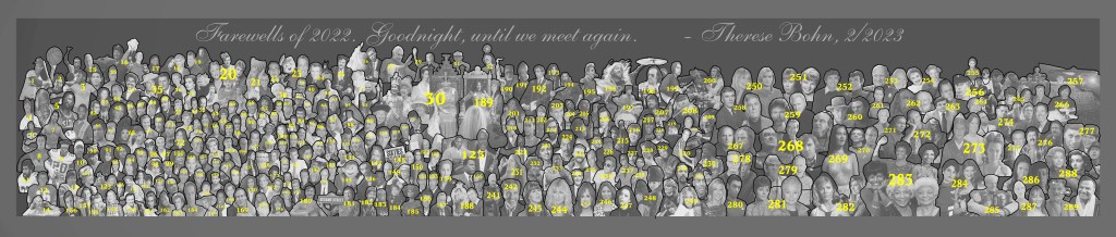 Unfortunately, there have been several notable passings already this year that I am aware of, but I am already beginning the 2023 farewells as I write this, and you will see them next January. (I’m only two months late with this!)