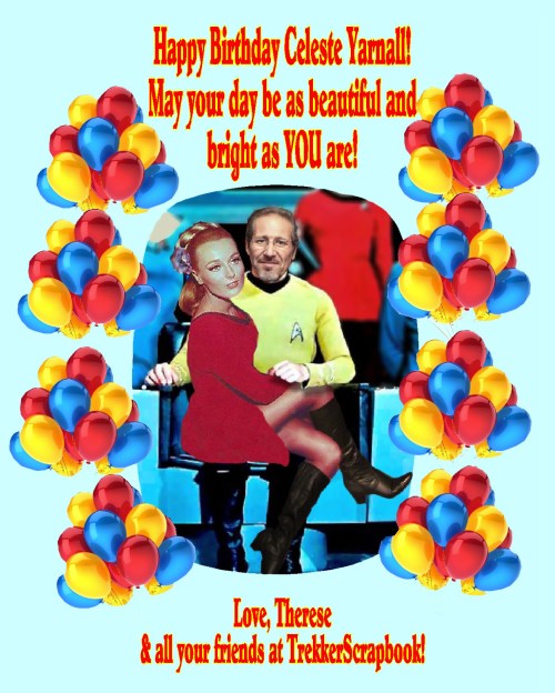 It is with a very heavy heart that I report today that our friend Celeste Yarnall has passed away. Surrounded by her loving family, she will never be forgotten. She is forever remembered to us Trek fans as Yeoman Martha Landon in The Apple, but she was so much more.