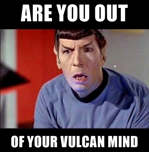 Well, my government may be shut down, but I’m not! Let’s start the week with some silly Spock/Nimoy Memes!