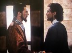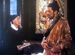 When the curtains open, we see George rise from a futon on the floor, dressed in light blue satin pajamas. He is a rich man, but a spiritual one. He does some yoga stretches, then the scene changes.