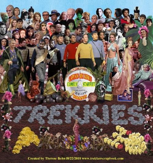 Anyway, for ages I wanted to recreate the famous Sgt.Pepper’s Lonely Heart’s Club Band except make it with memorable Star Trek Characters. As the centerpiece, Kirk, Spock, McCoy and Scotty replace the Fab Four, and I poured over many pictures to find just the right character to fill in for all the originals (and a few more) for this cover.