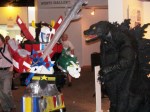 Here’s a gallery of characters from the con. Some of the costumes were really masterful – especially Godzilla! Now don’t be fooled, this may look like a factory manufactured rubber suit, but it was actually was hand crafted and tooled by its wearer! I could see elements of foam rubber and styrofoam in it, and the gentleman who wore it said it took over a year to create in his garage! Wow. Amazingly, he didn’t win 1st place that went to the two young girls who hand crafted their dazzlingly frightening costumes of Weeping Angels (including the masks) from Dr. Who. Other winners were The Iron Patriot, (which was also amazing), Wonder Woman, and a delightfully loony Freakazoid. There were Lots of comic book, and gaming characters represented there too, as well as Steam punk creations and many Dr. Who’s (two wearing a fez).