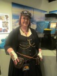 There were many fan groups as well, with Star Wars well represented. There was only one Star Trek group, U.S.S. Serling, whose ‘Captain’ and ‘First Officer’ I posed with (Lisa Stucky, Doc David Rasey) They liked my costume, and for me personally, it was nice to have someone there recognize my 44-year-old TV character! I admit, I got a lot of odd looks from people, with hardly anyone recognizing me as a Star Trek character. It definitely made me feel old, as a few people thought I was from Lord of the Rings, and no one said “It’s T’Pau!” To be fair, if this was a Star Trek Convention I’d be more recognized, but despite my crafted look, I did feel a bit dated here. At least I passed out a few trekkerscrapbook calling cards to anyone who had an inkling as to what the Original Series was! Maybe we’ll get a few more watchers here. Glad I went.