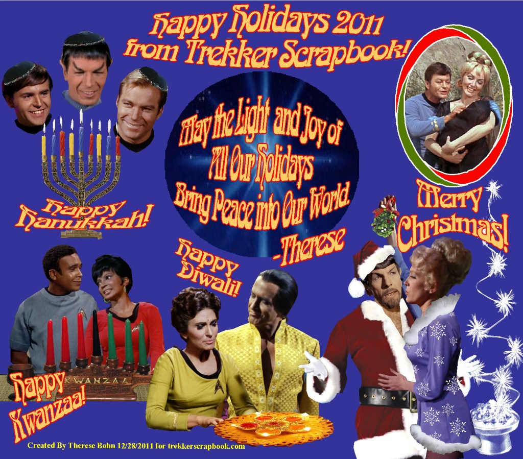 Hi Everyone, Today is the last day of Hanukkah, and the 5th day of Christmas. Sorry I didn’t get this out sooner, but I was working on my most recent Trek Holiday collage and it took longer than I thought it would be! (Lots of digital cut and paste) I also made a simpler holiday post earlier, with Spock playing his lyre! And of course just yesterday was Nichelle Nichols 87th birthday, and I made a little poster for her too! ❤ . Be sure to scroll down to see all of them! Thank you my readers for checking out my blog now and then. And I send you all blessings for this holiday season, and may 2020 bring you good health, much happiness, blessings, and serenity. Here’s a taste of my Holiday ‘Greatest Hits’ Love you All, Therese xo