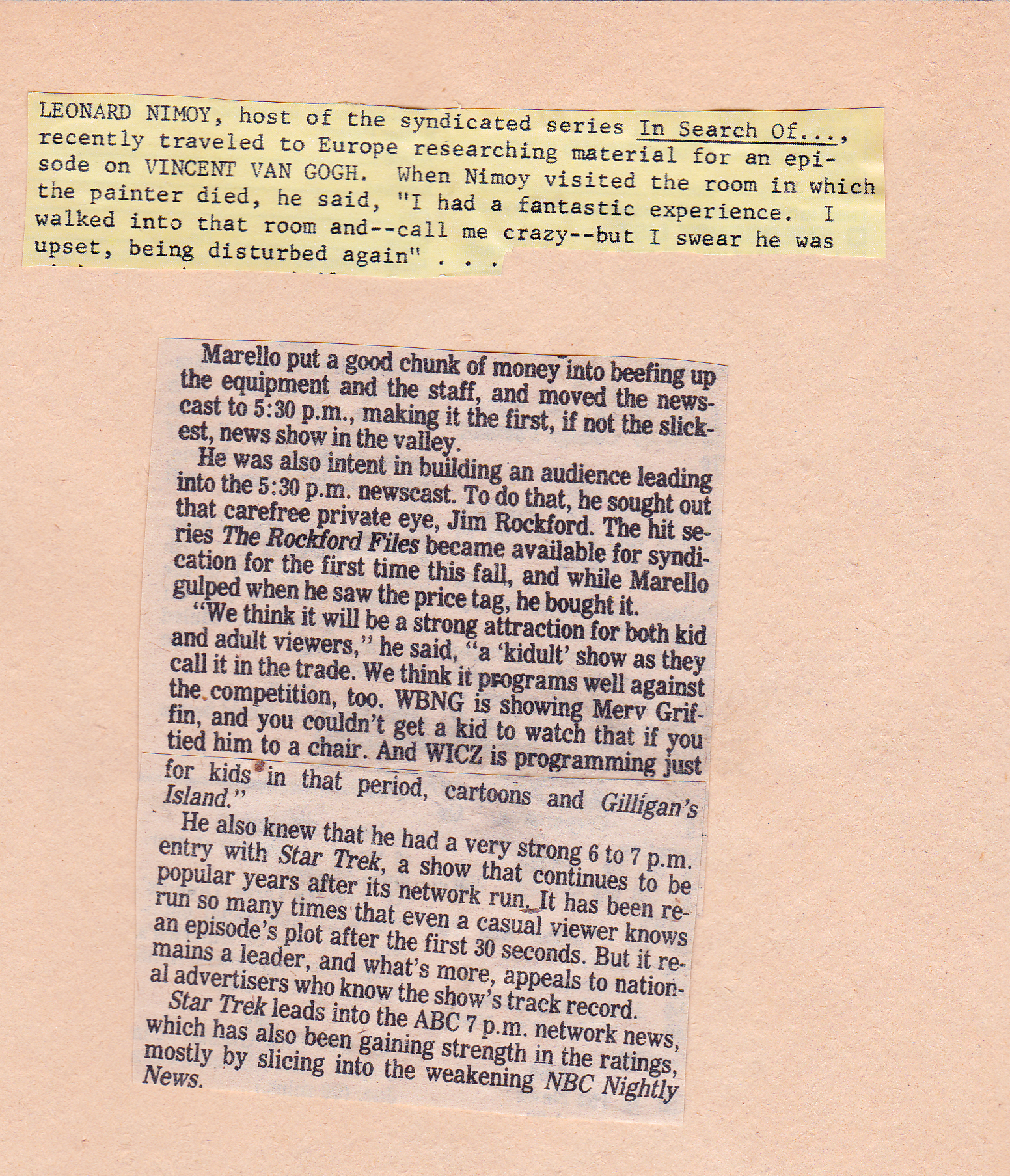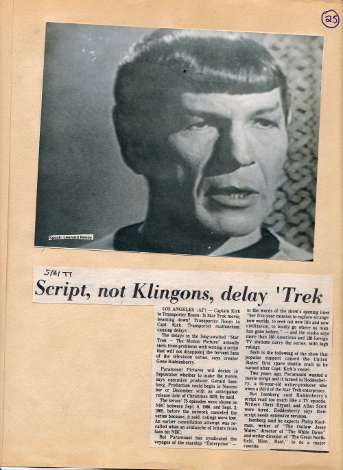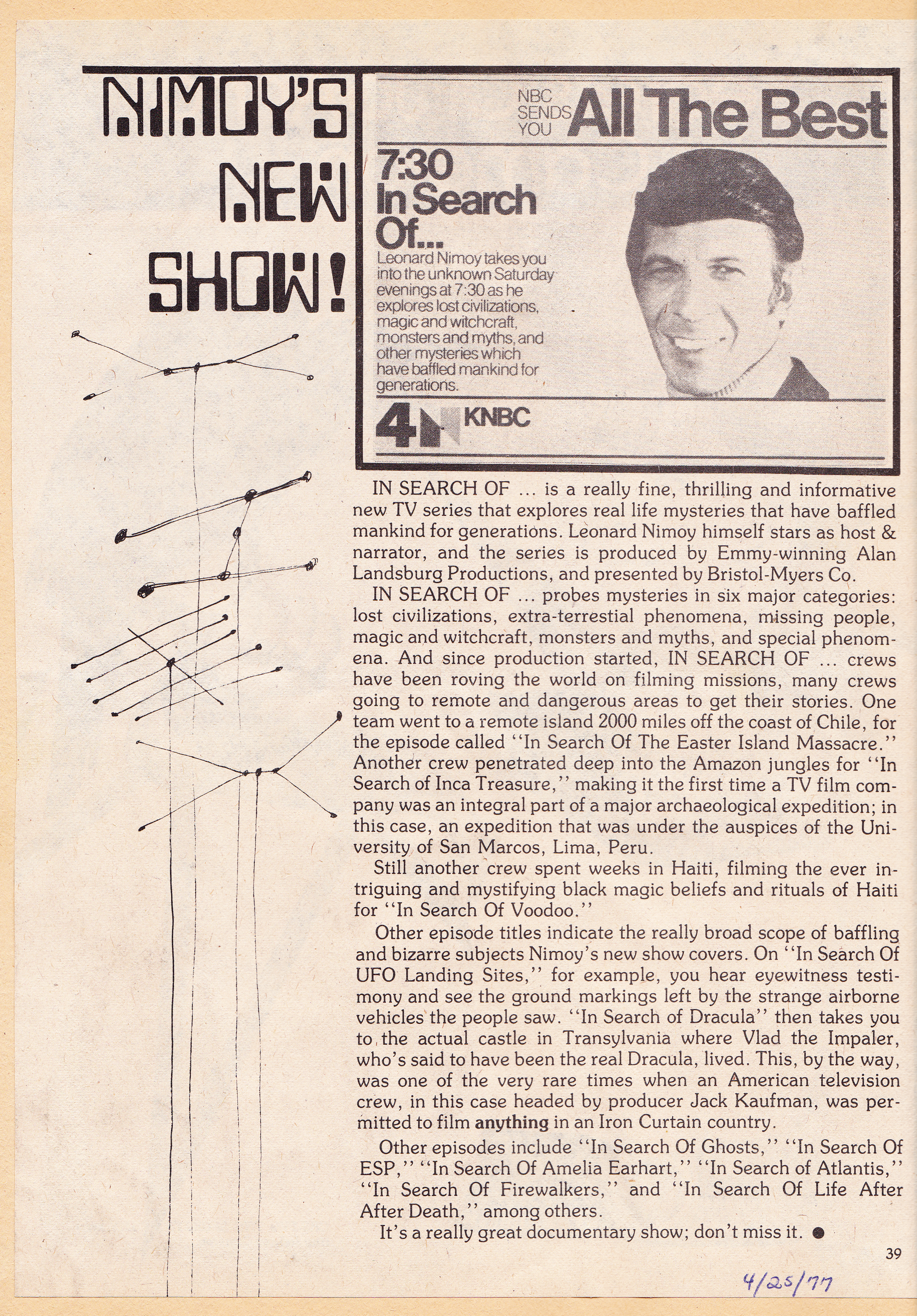 Then there was another video, this one of Nimoy walking in a garden setting. This time he looked as he did on In Search Of… But it wasn’t so much where he was, but what he said. He was talking about making a good life, and he suddenly pointed to a flat stone on the path and said “Someday I will be buried here, but I’ll be alright.” ,then talked about how special every day is, and how not to waste it. He said he was happy with his life.