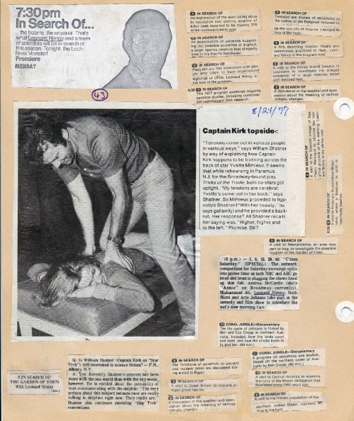 Then suddenly there was a scene from a never-before-seen blooper reel. There was Nimoy as Spock in a close-up tossing a red apple back and forth to someone off camera. We see it being tossed at him, and it bonks him in the nose! There is no audio, but we can see him mouthing “OW! That Hurt, Dammit!” then laughing it off!