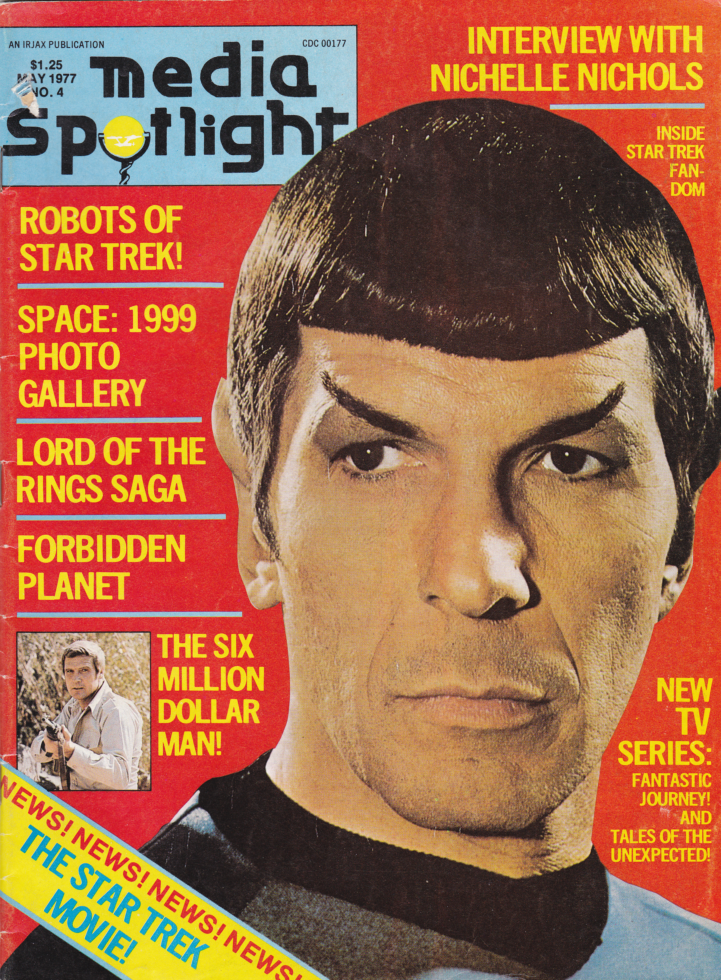 Hey kids, here’s today’s flashback: The last few pages of Media Spotlight and a great photo of swinging George Takei in his best 70’s gear! Good ‘ol George was a regular fixture at the Conventions, always ready with a smile and a pen ready for autographs! George was described in David Gerrold’s World of Star Trek as one of the ‘smilingest’ human beings you were ever likely to meet, and he delivers his million dollar smile here! I love George! Sadly, this is the last of my Media Spotlight Magazine, and I don’t have any more copies, but if I should come across any in my travels, you’ll see the here!