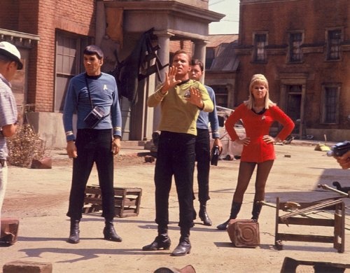 I’m always happy to find candid stills of TOS production! Here’s some gems from all three seasons. Love the lollipop (it was hot on those sets!)