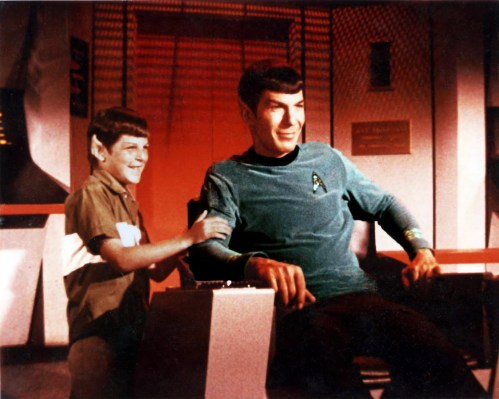 In this classic still from the original blooper reel, little Adam Nimoy greets his his father on the set with his very own Vulcan ears. Just like Daddy! Aww!